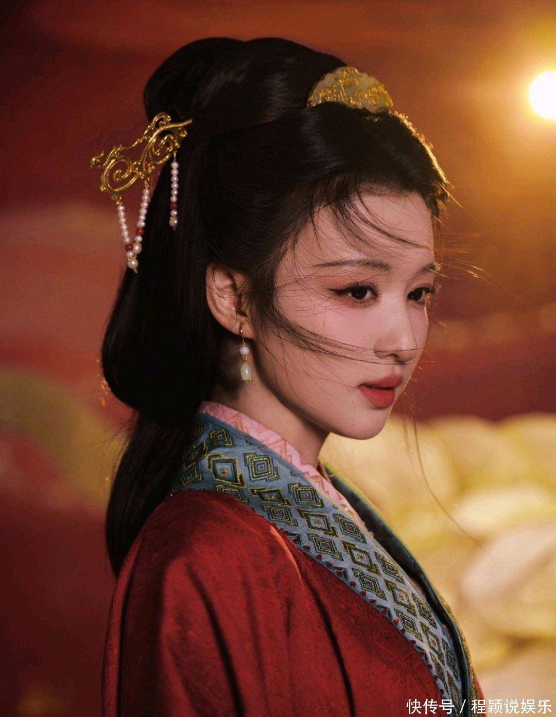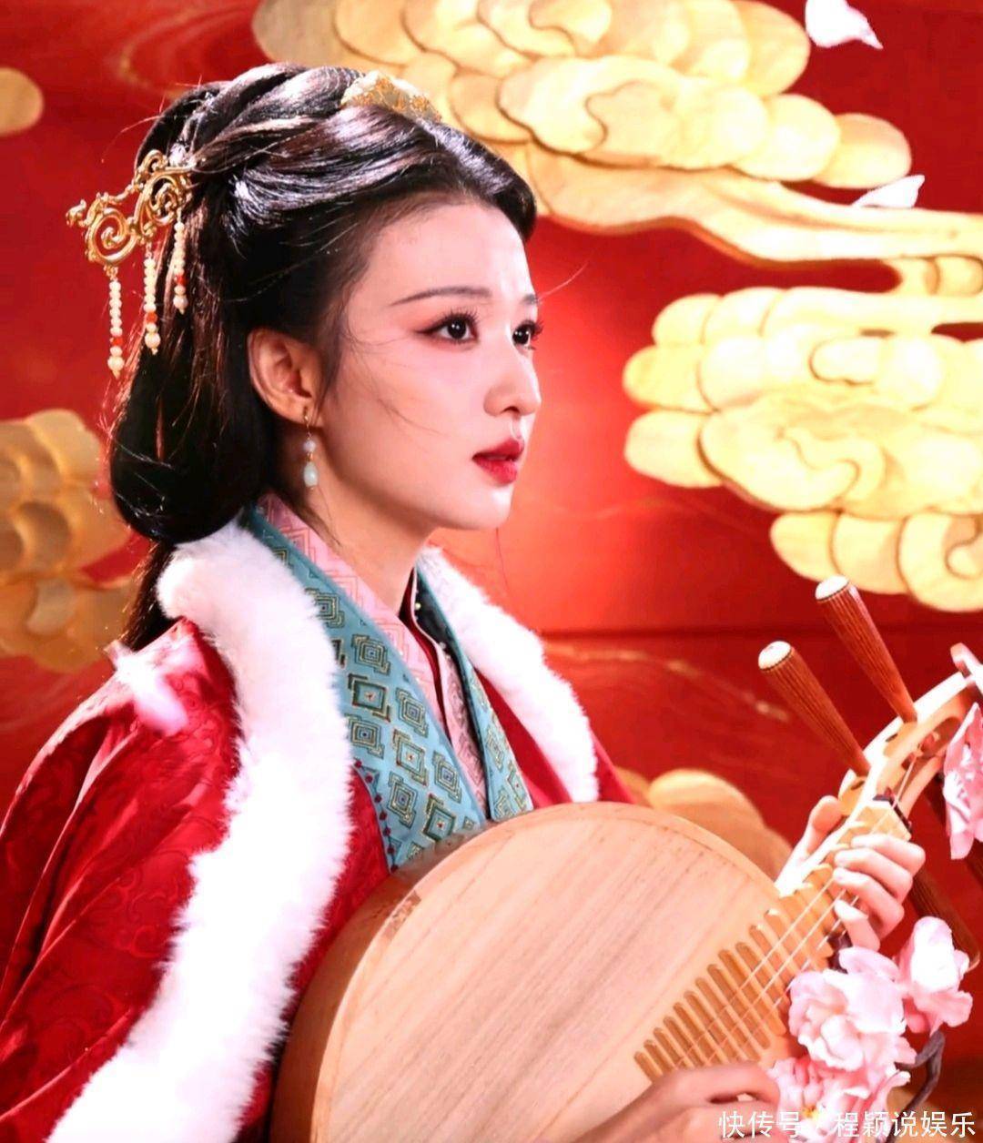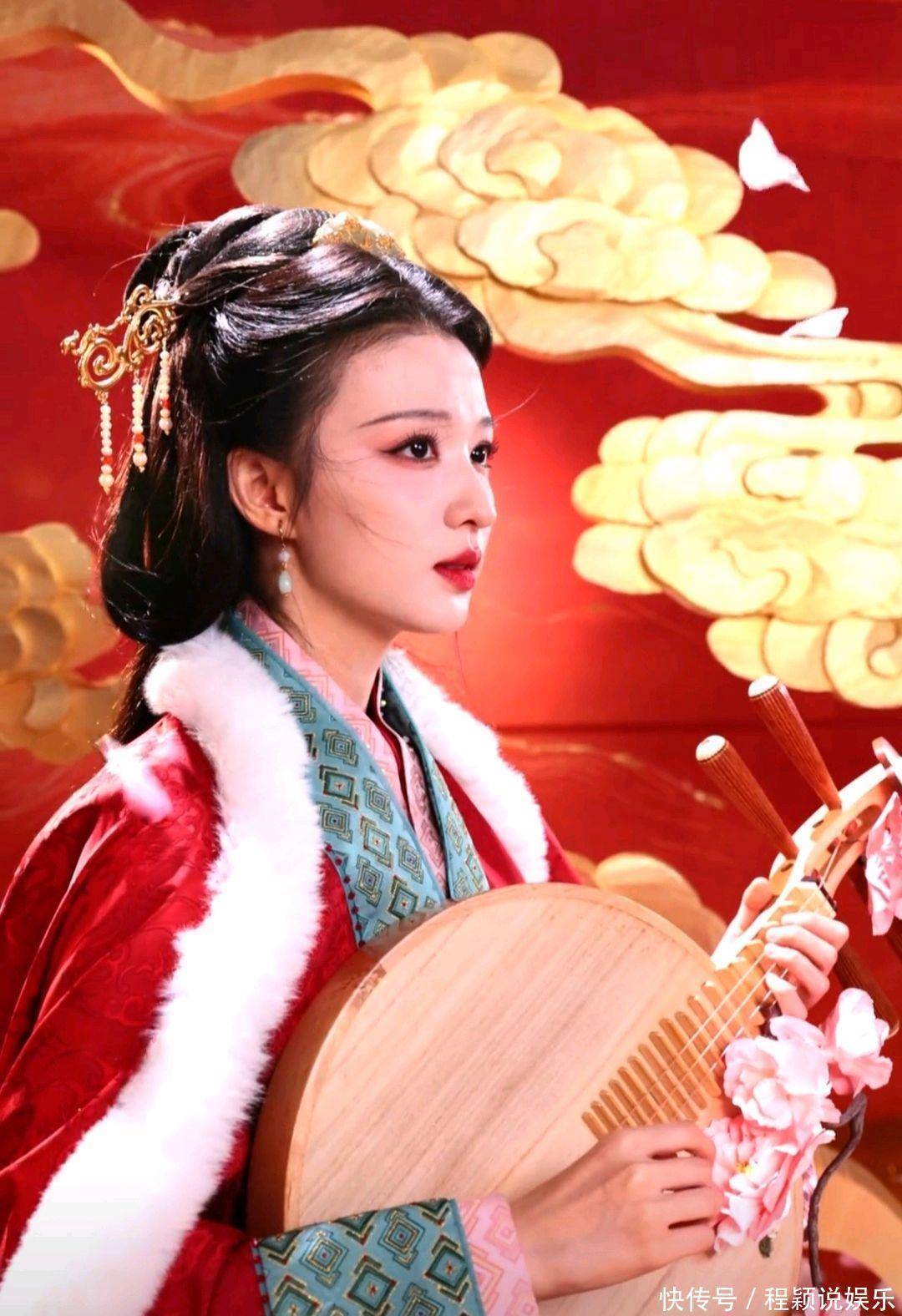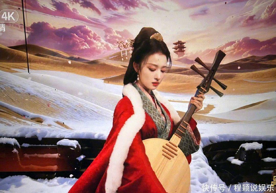 央视4K无滤镜镜头下,她一袭正红战国袍汉服,怀抱琵琶伫立在飘雪之中,冷白皮衬着红裙,肩颈线条流畅挺拔,美得端庄凛冽,被网友狂赞“国泰民安脸,天选王昭君”。雪花飘落的特效与舞台光影交织,恰如“万里冰封一点红”,每一个帧都堪称壁纸级画面 。