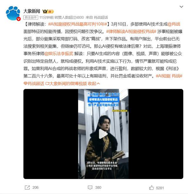 3月10日,多部使用AI技术生成肖战面部特征的短剧传播,因授权问题引发争议。涉事短剧被曝光后,部分剧集采取局部打码、改名"霄战",未下架作品。有用户指出,平台前台已无法搜索到相关剧集,但链接仍可访问。那么AI侵权有啥法律后果?对此配资炒股网站官网,上海理振律师事务所律师李振武解读:只要AI生成的内容(图像、视频、声音)能够被公众识别出特定自然人,就构成侵权。利用AI技术实施以下行为,情节严重就可能构成犯罪。如果利用AI合成的肖战老师的形象或声音,进行盈利,数额较大的,根据《刑法》第二百六十六条,最高可处十年以上有期徒刑,并处罚金或者没收财产。