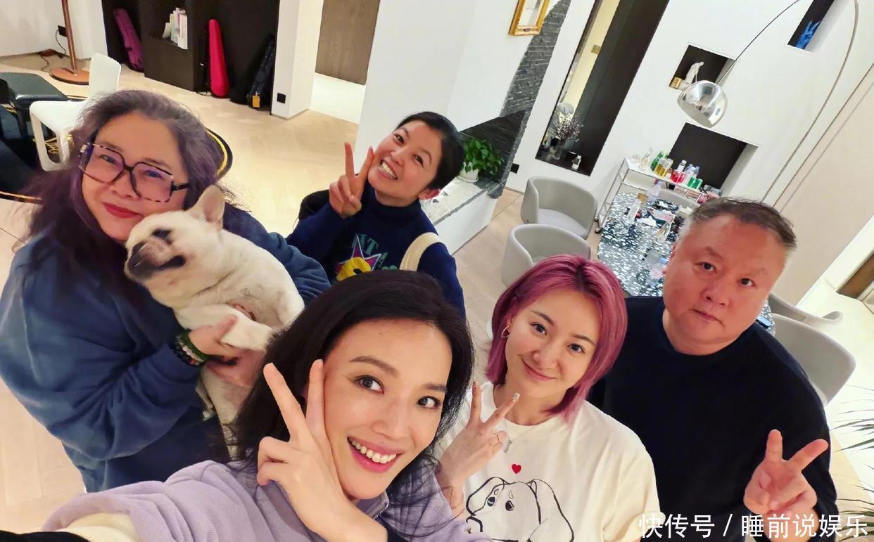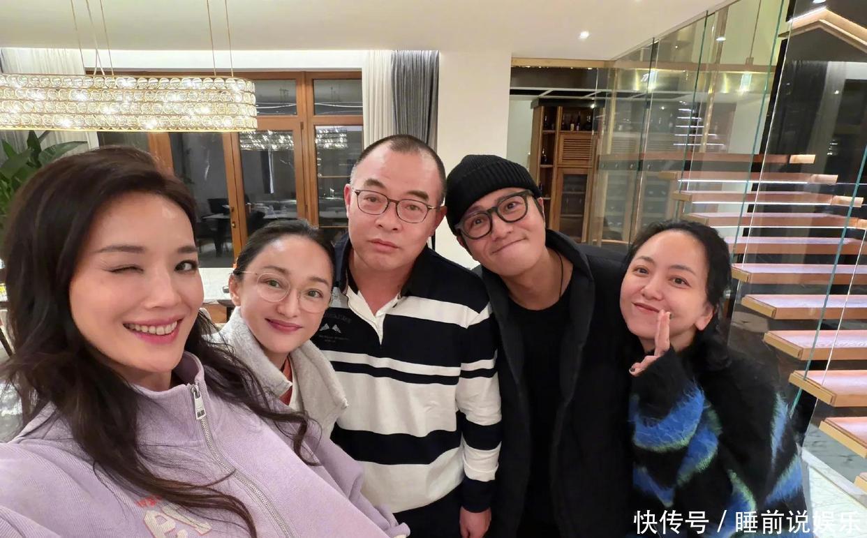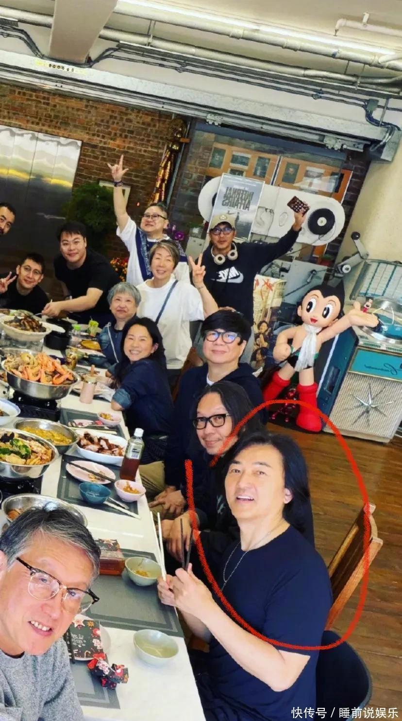 另一张合影也是在家里拍的,穿的衣服跟之前那张一样,说明是在同一伙人一起聚会。看来那次聚会挺热闹的,舒淇才会特别发了多一张照片。