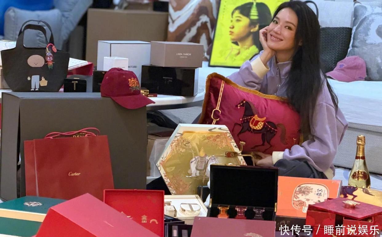 只有那一张单人照,是舒淇和一堆礼盒的合影,穿的衣服和第一张聚会上的一模一样,估摸着都是朋友们送的礼物。